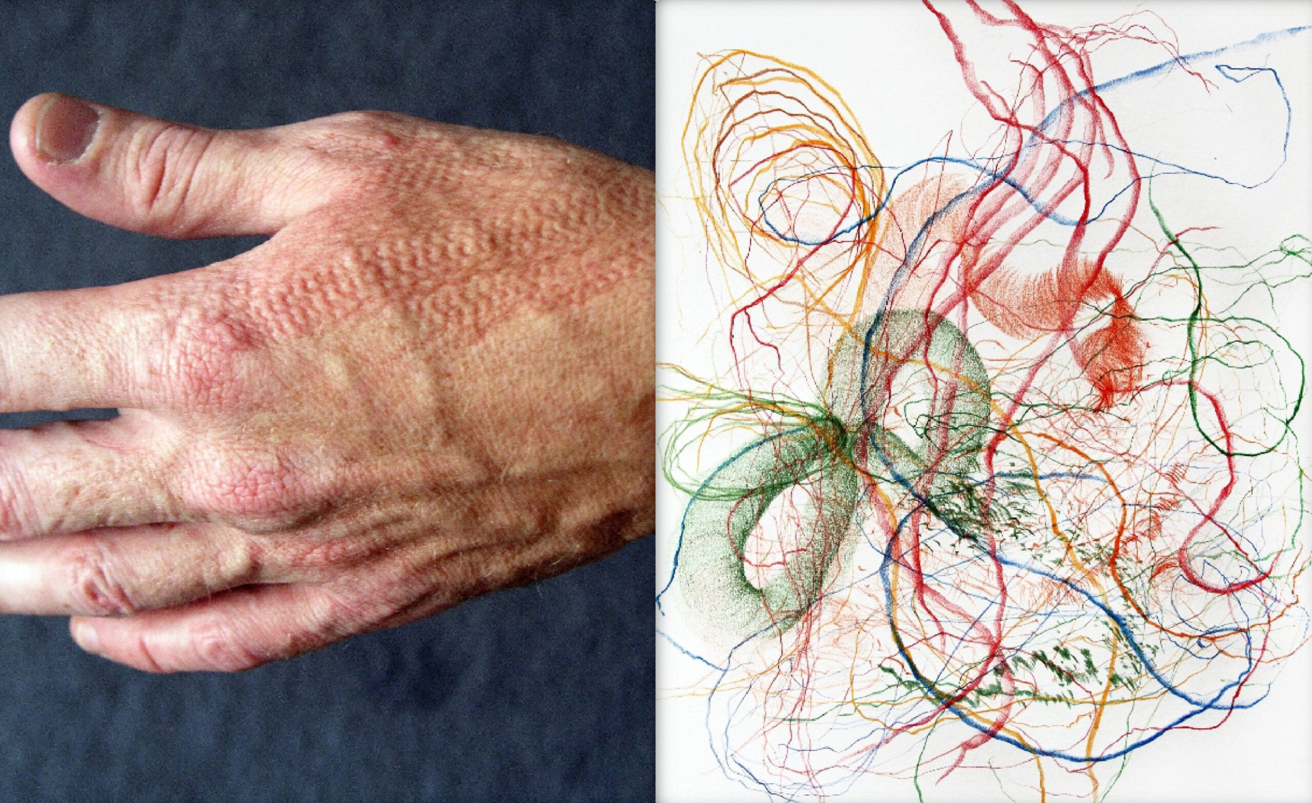 Across its pages, Mercado treats the body not as a representational subject but as a site of inscription—marked, fragmented and translated through gestures of collection and displacement. Hands, organic residues, graphic traces and algorithmic notations coexist without hierarchy, forming a system in which biological processes and technical procedures are inseparable.