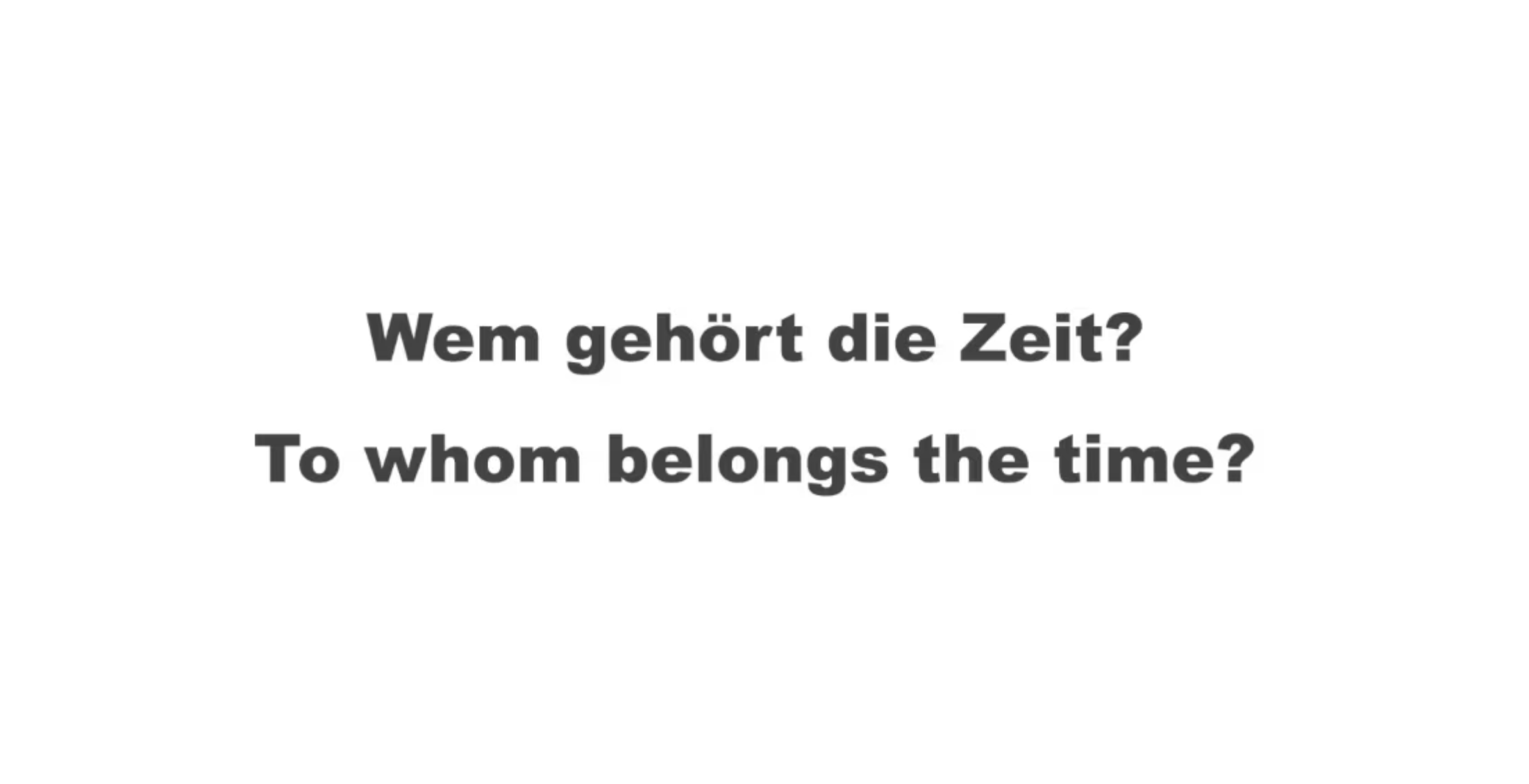 The conceptual framework draws from a reflection by Siegfried Zielinski in Variations on Media Thinking (2019), in which he revisits the political urgency once attached to the question, “To whom does the world belong?”—a question famously posed by Bertolt Brecht in his 1932 film Kuhle Wampe. Zielinski proposes that, in our present condition, a more pressing question has emerged: “To whom does the time belong?”