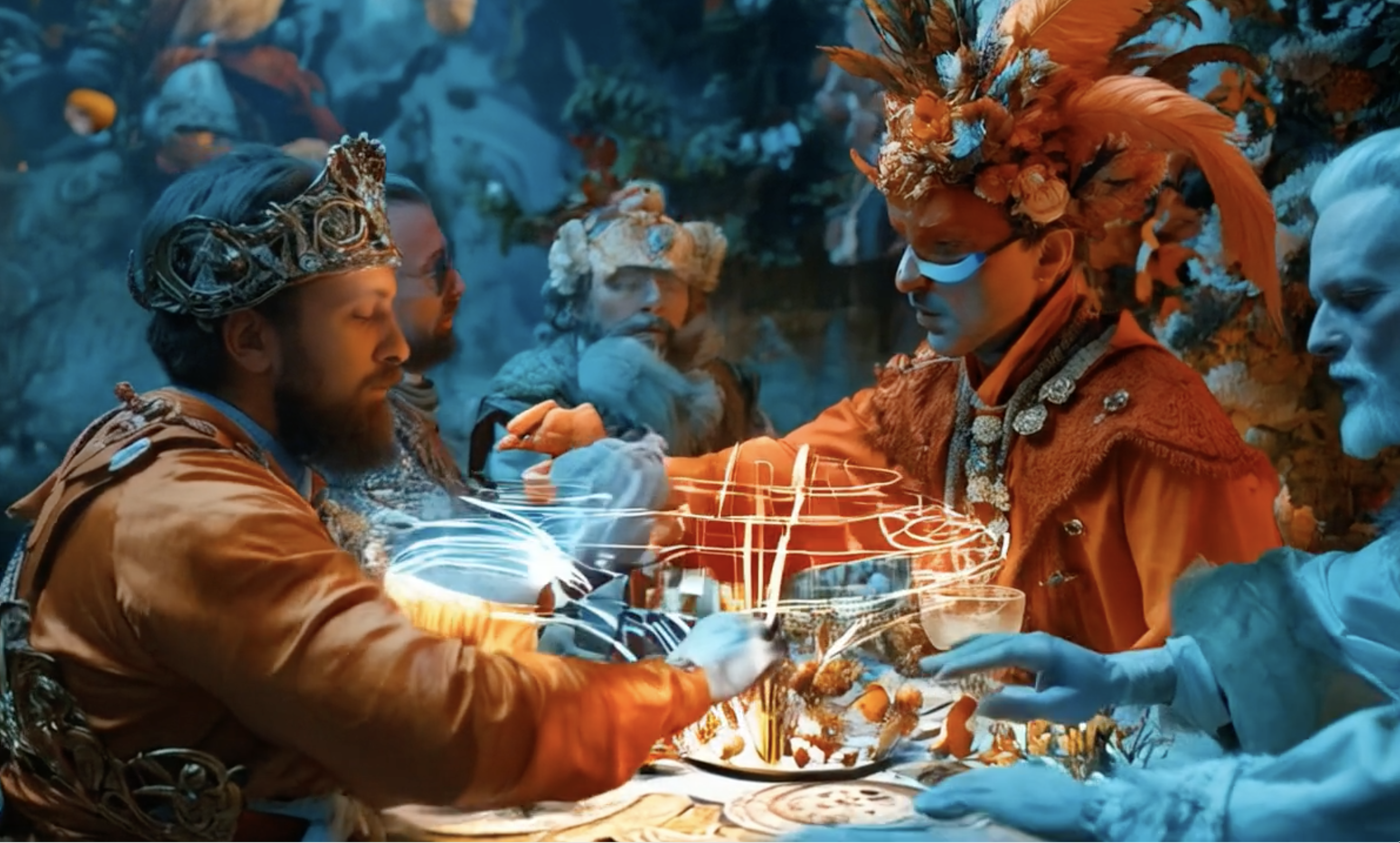 El sistema visual está impulsado por IA generativa multimodal entrenada con datasets de videojuegos históricos y pinturas digitalizadas de los siglos XV–XVII. Los modelos producen escenas que evolucionan a lo largo del tiempo mediante procesamiento audiovisual en tiempo real, integrando: