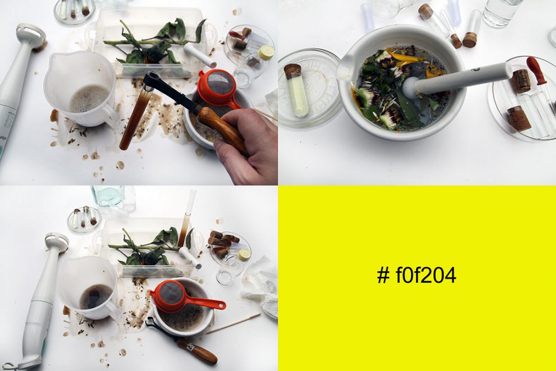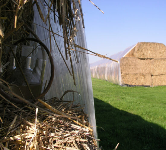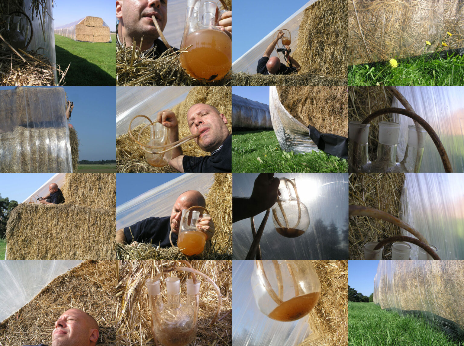 The artist dilutes his DNA in water from an agricultural ditch and mixes it with hay inside rural Danish landscapes. Through aeration and bubbling the material enters natural fermentation processes.