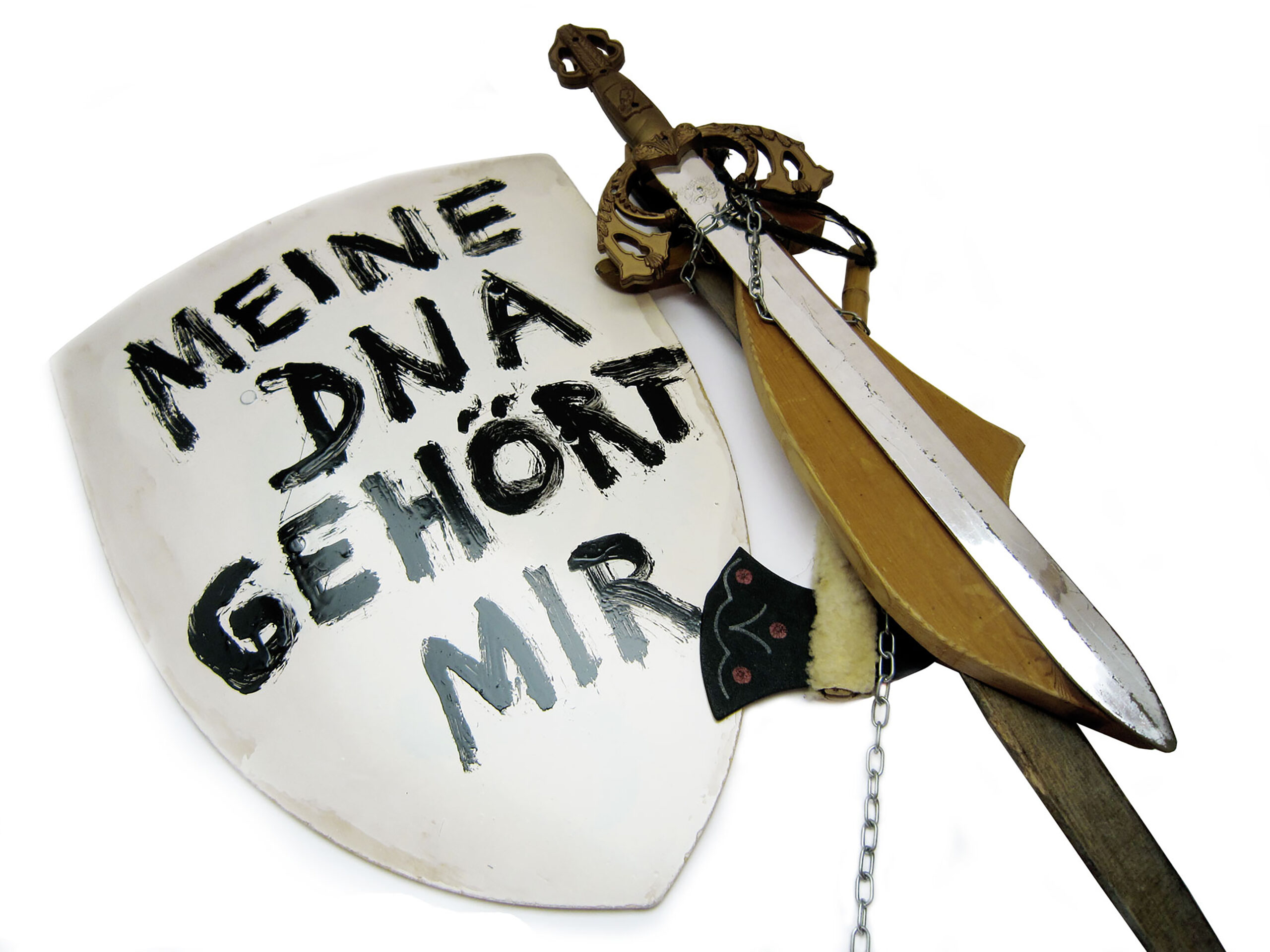 A variation of the previous work asserting biological autonomy. The piece confronts emerging debates about the ownership of genetic information and the commodification of biological identity.