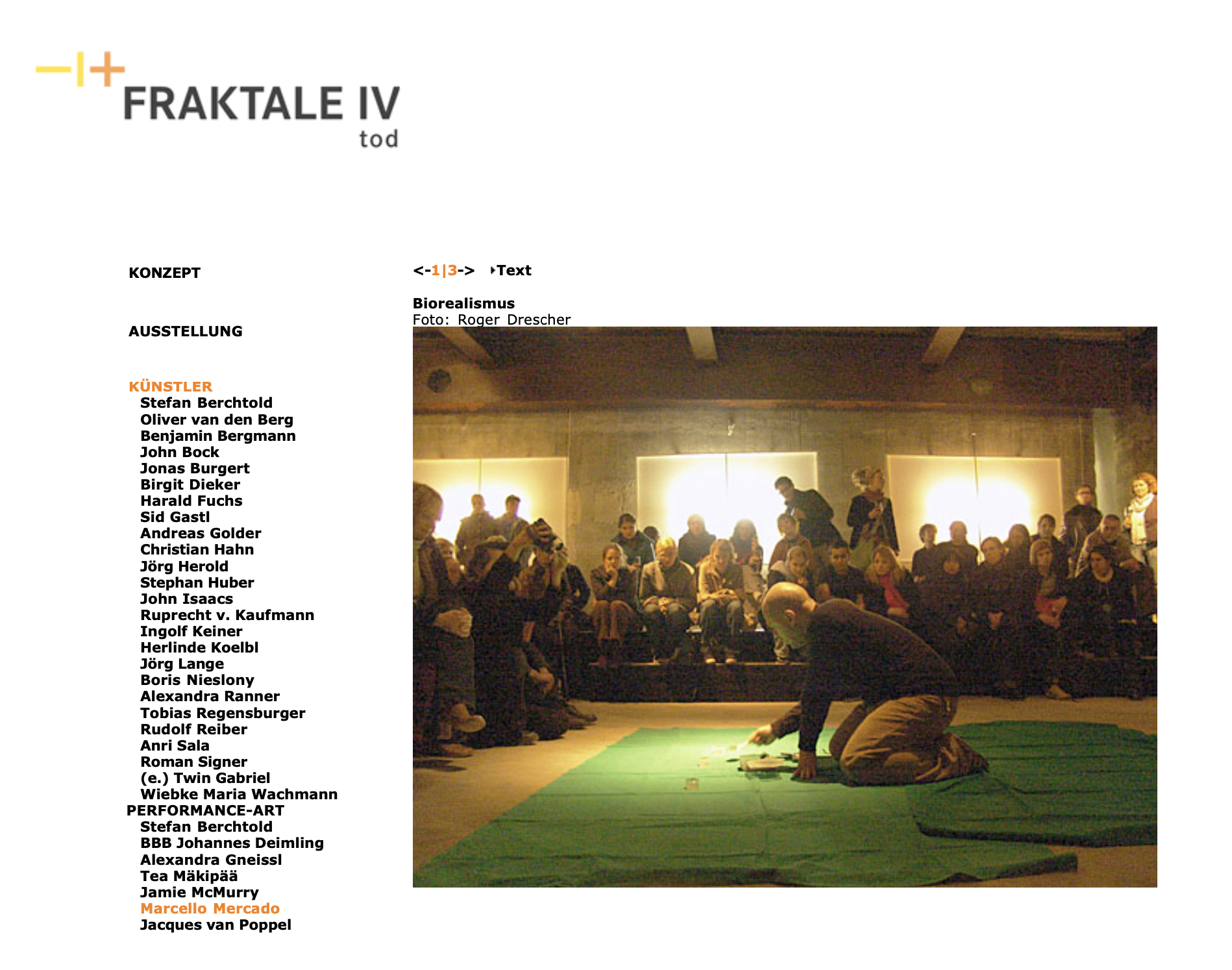 The final maritime dispersal of the worms connects Biorealismus with another performance from the same cycle, Das Kapital: Bell, Marx and the Cycles of Absorption (2005).