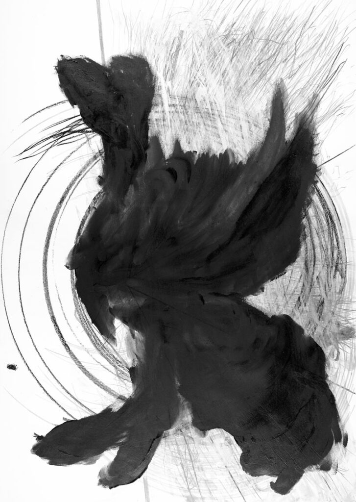 Simultaneously, the action involved the mental articulation of the ideas that structure Mercado’s artistic practice. Past paintings and drawings, as well as works not yet produced, were conceptually projected onto the walls as acts of anticipation and elimination. In this sense the intervention deposited not only biological material but also the conceptual residue of an artistic trajectory that extends across past and future works.