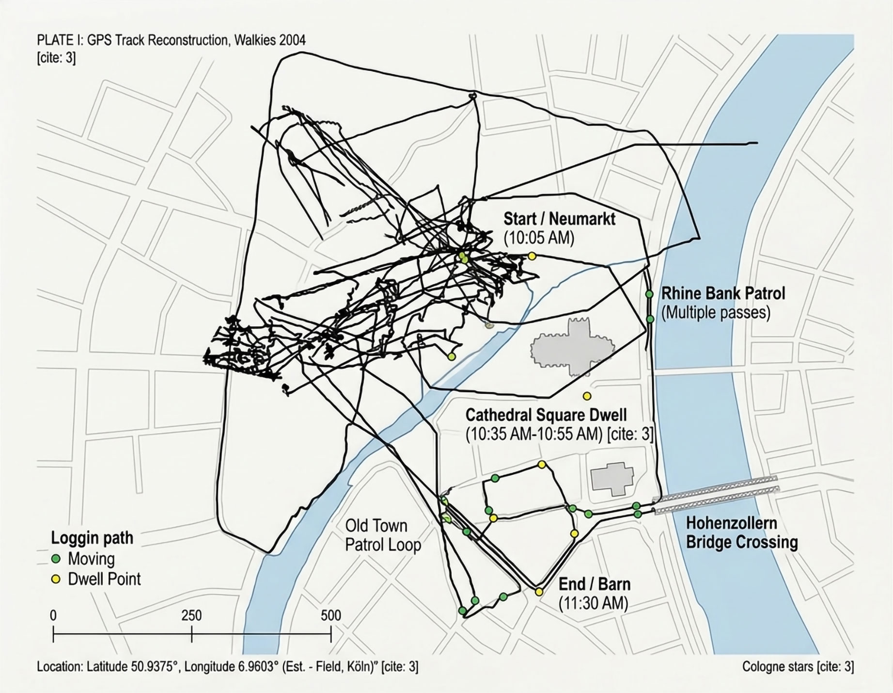 Carrying the extracted DNA in small containers, Mercado walked through the streets and intersections of Cologne slowly dripping the liquid onto the asphalt. The action created a temporary molecular trail across the urban environment.