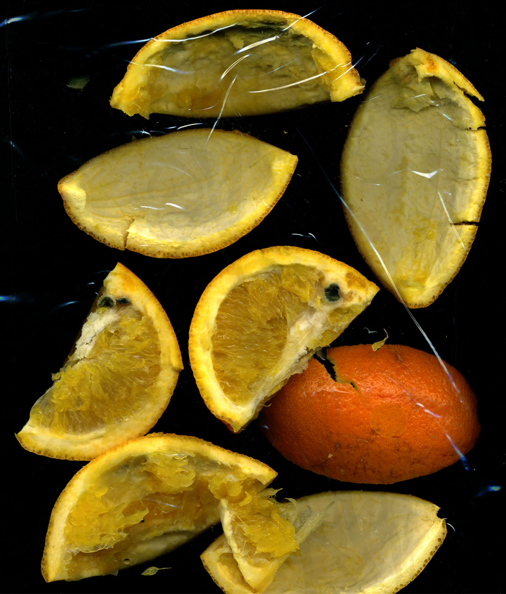 Mercado enters this landscape carrying a liquid produced through the decomposition of citrus fruit.