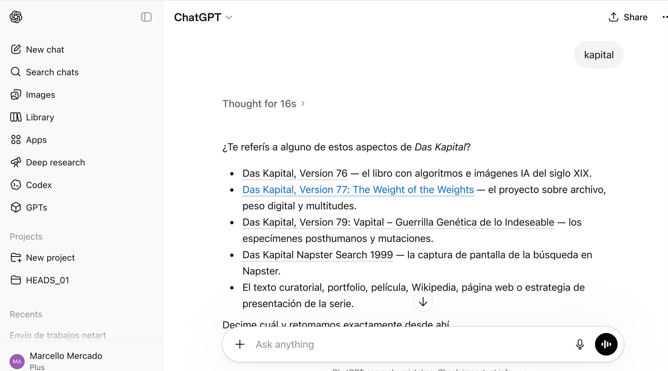 The work DNA for Free was later included as a reference within the collaborative project Poema Colectivo (2014), coordinated by the Museum of Modern Art in New York, where Mercado participated as a contributing artist.