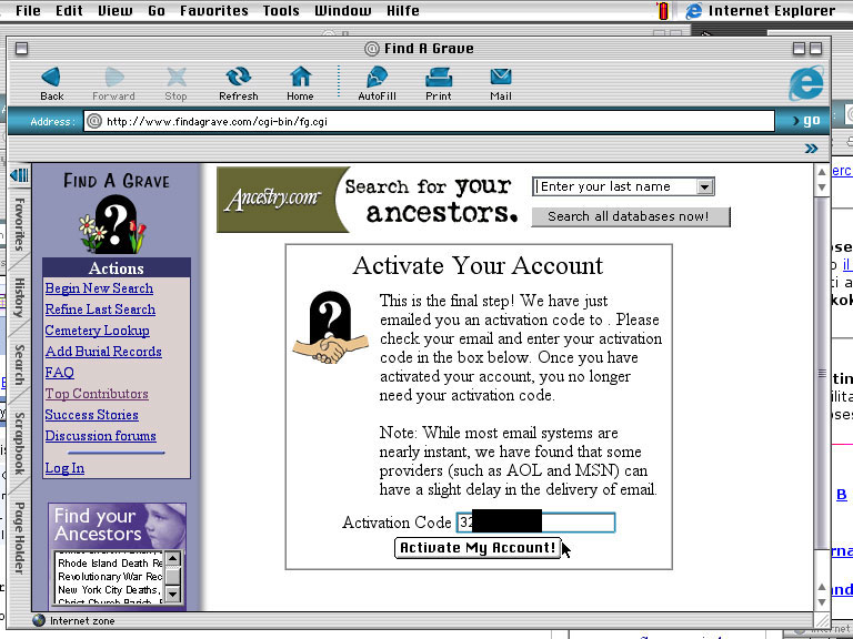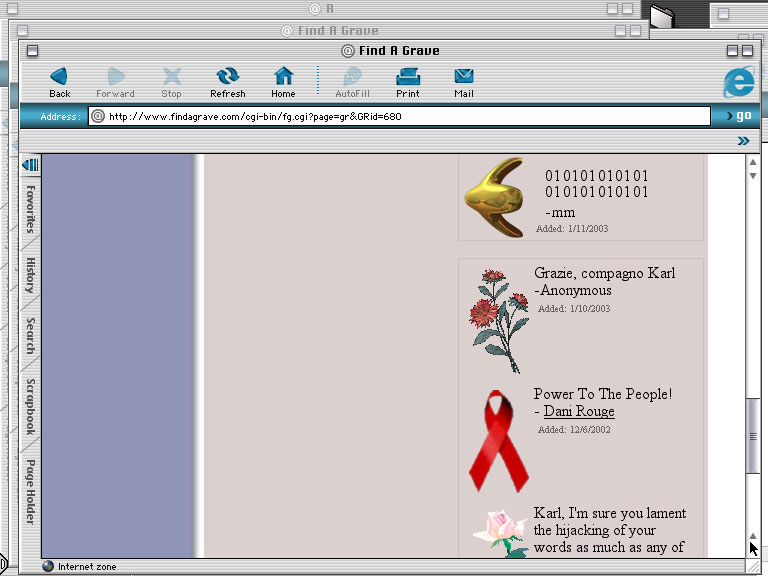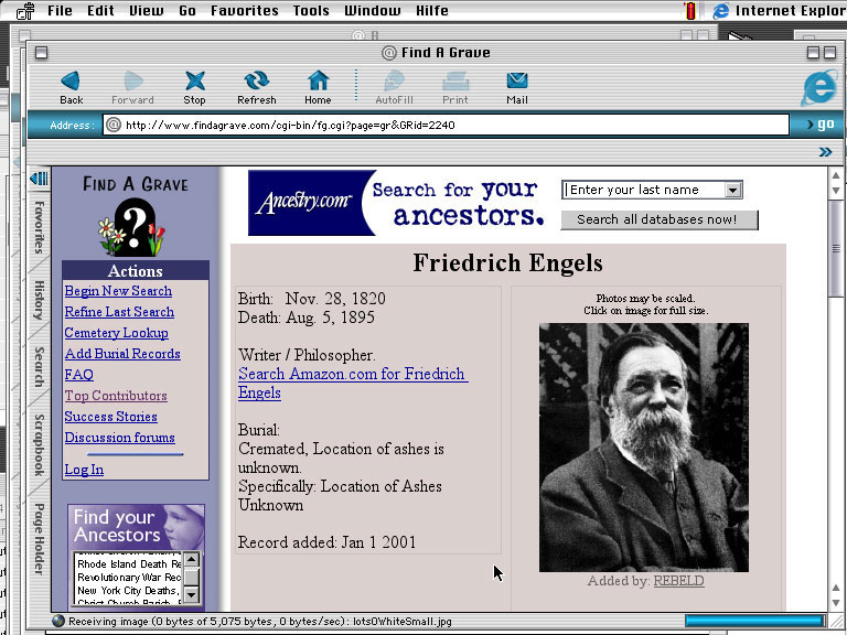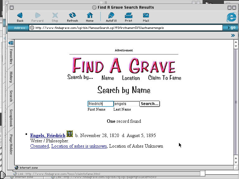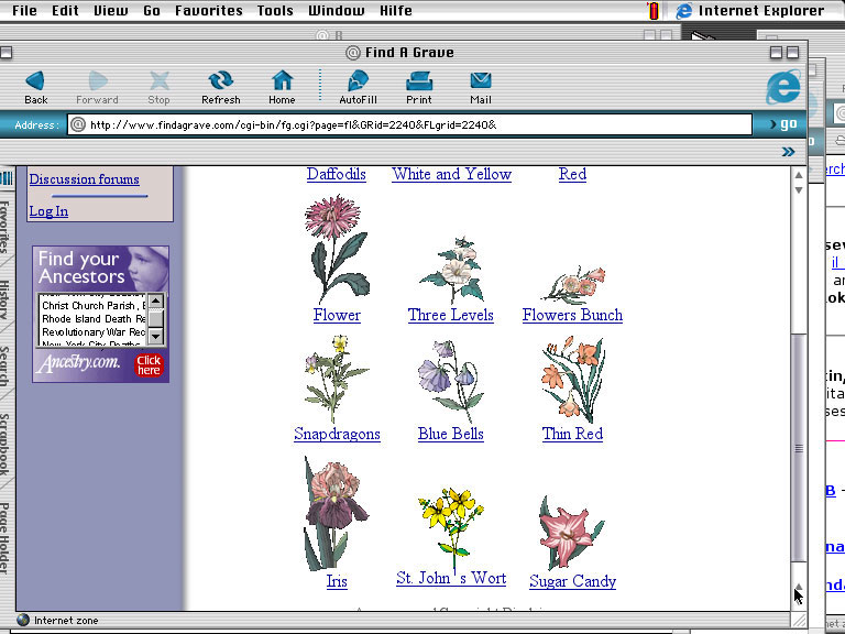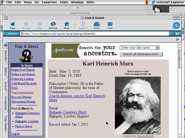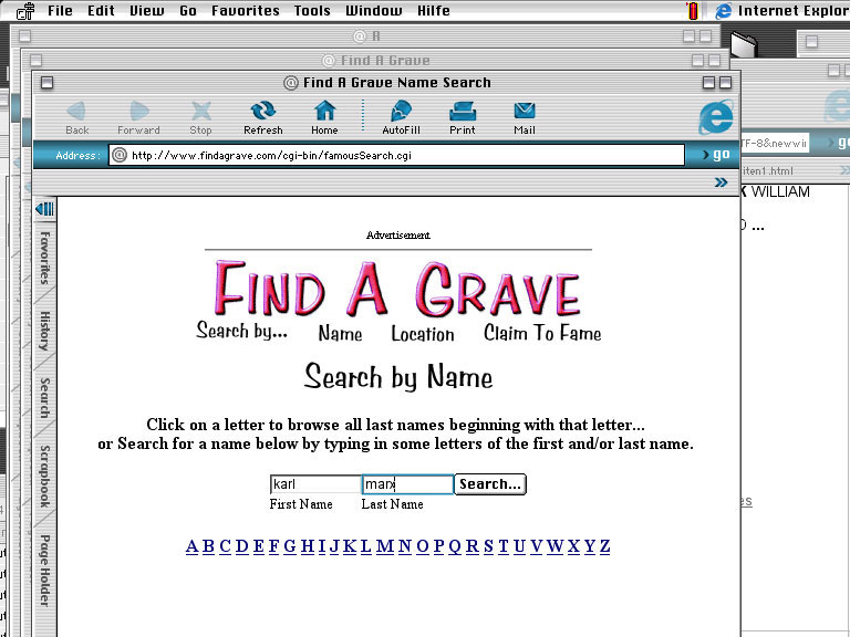 This work operates within early networked archival environments that simulate access to burial sites through searchable interfaces.