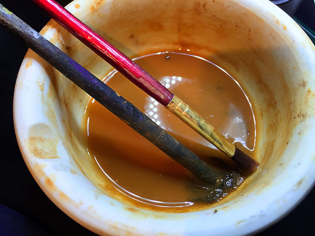 Meteorite oxide detached from the floor, collected and mixed with water as a pigment.