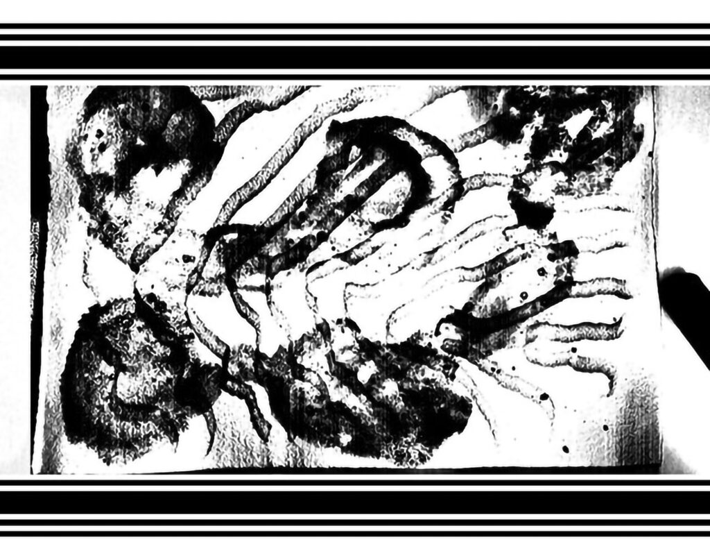 Prior to any sonic output, the project produces a physical notation system. Pulverized meteorite residue was mixed with water and applied to paper staves, generating graphic scores whose granular irregularities encode mineral density, oxidation and dispersion patterns.
